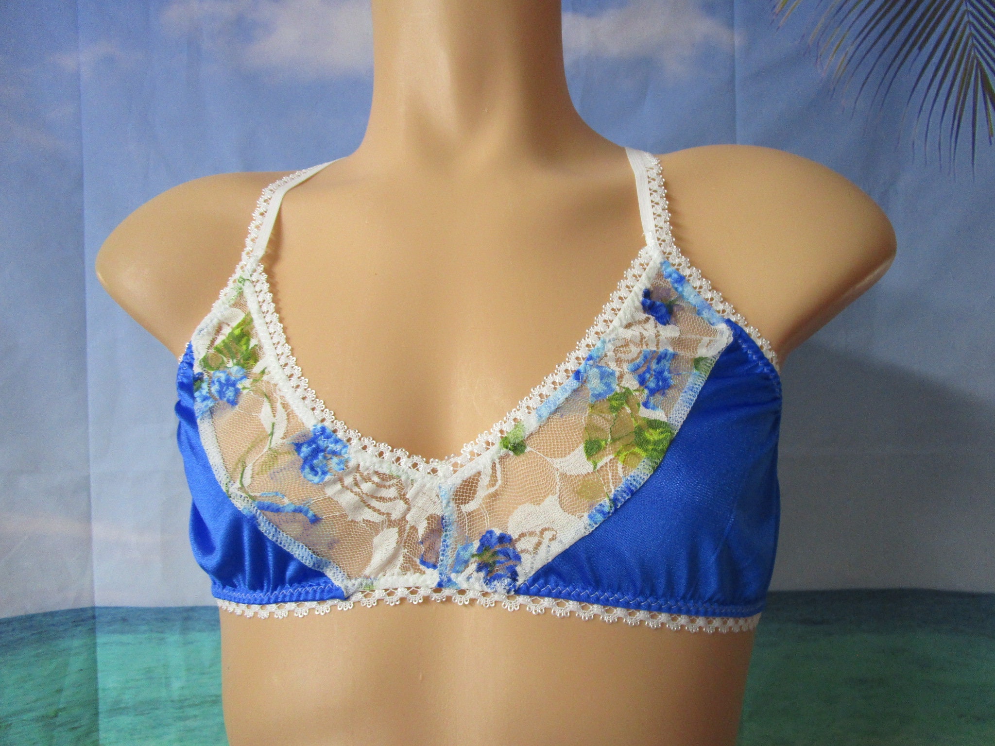 Nylon Tricot No Cup Bra W Floral Lace Prints Picot Trim Etsy